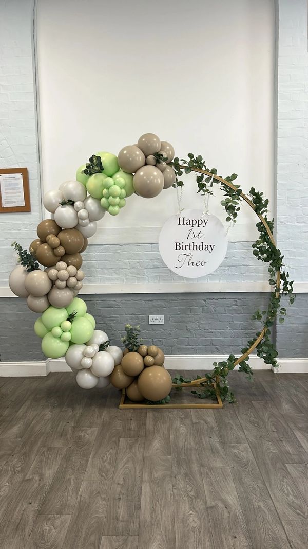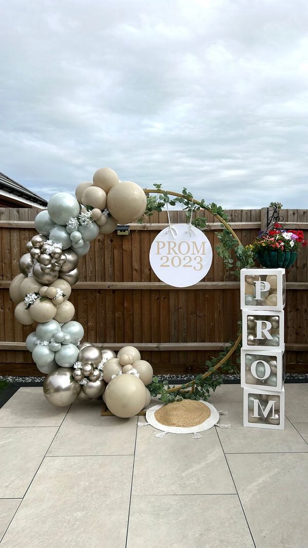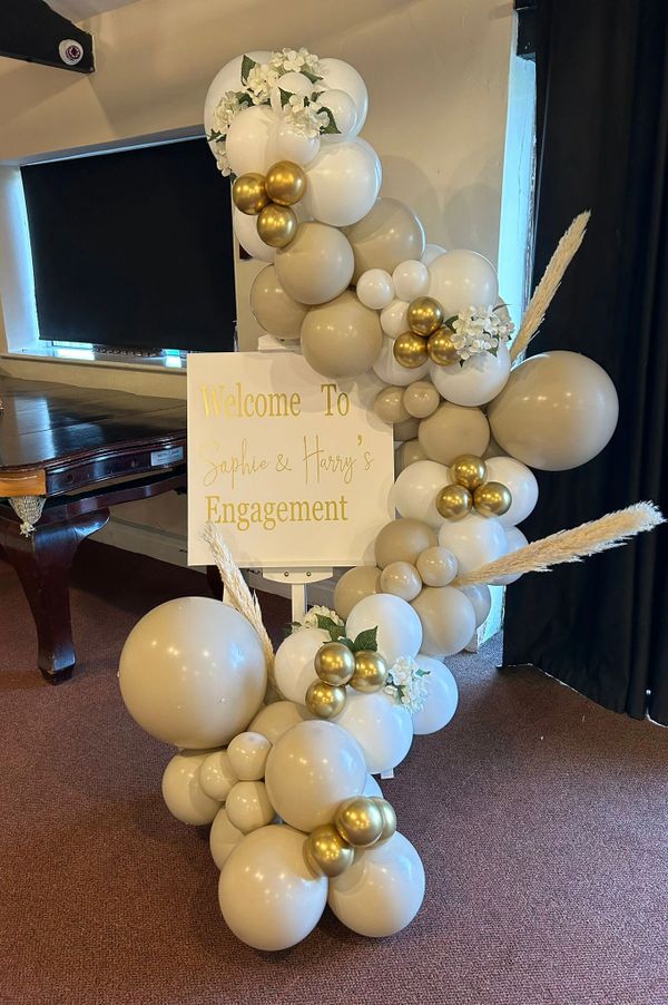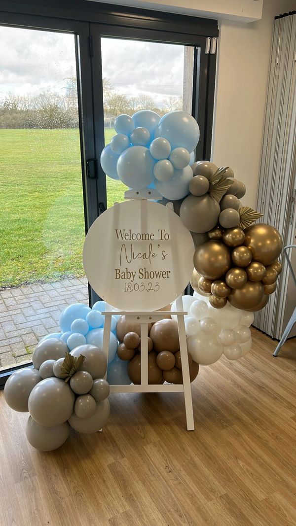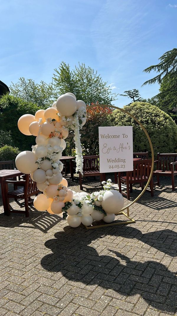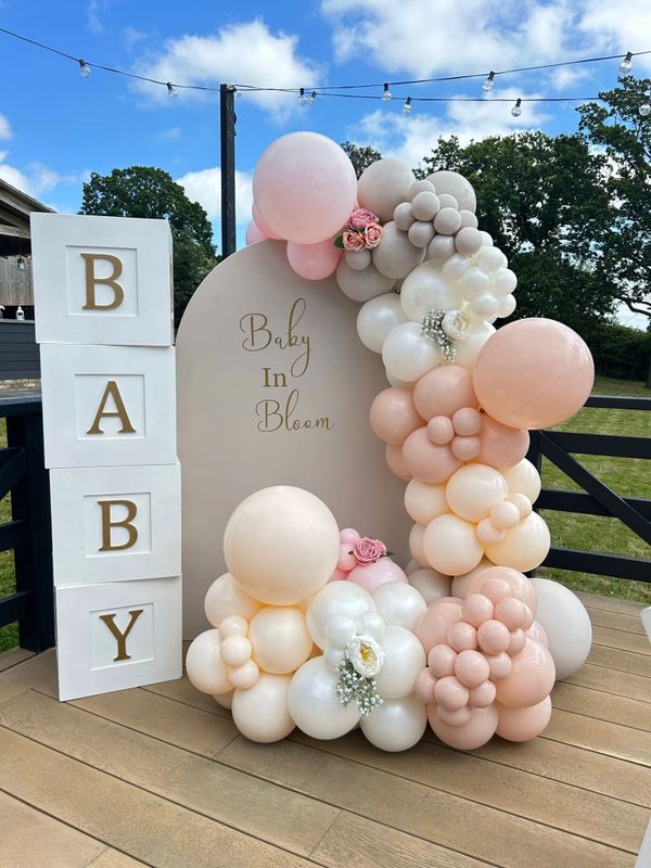 Personalised sailboard hire with organic balloon garland starting from £150, with other props to hire from £10