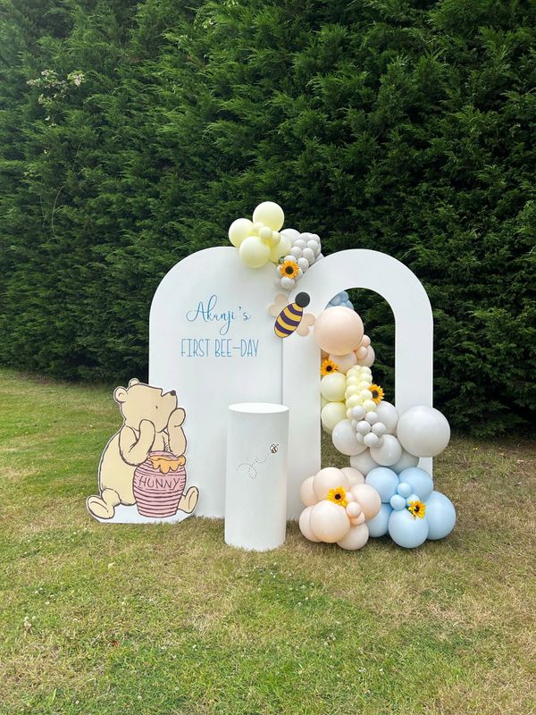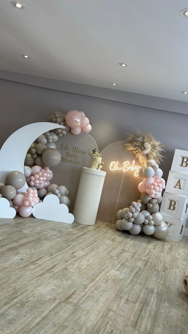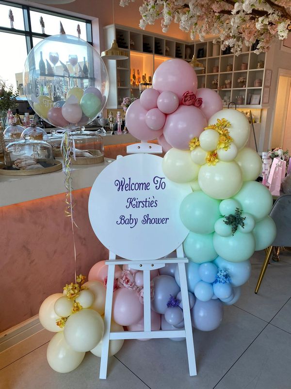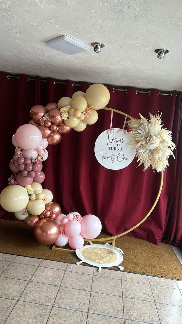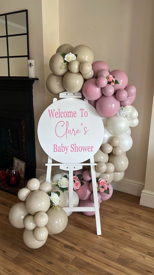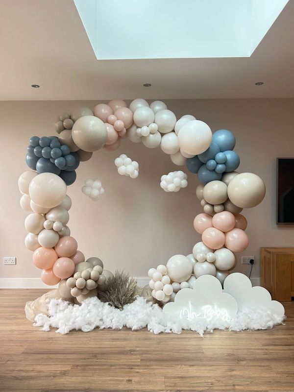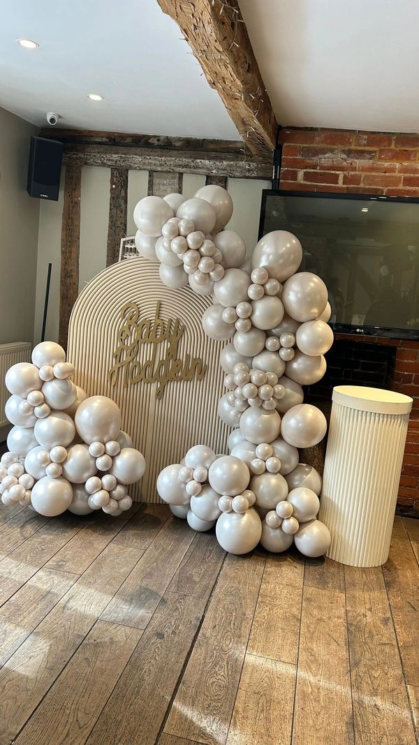 Personalised sailboard hire with organic balloon garland starting from £150, with other props to hire from £10
