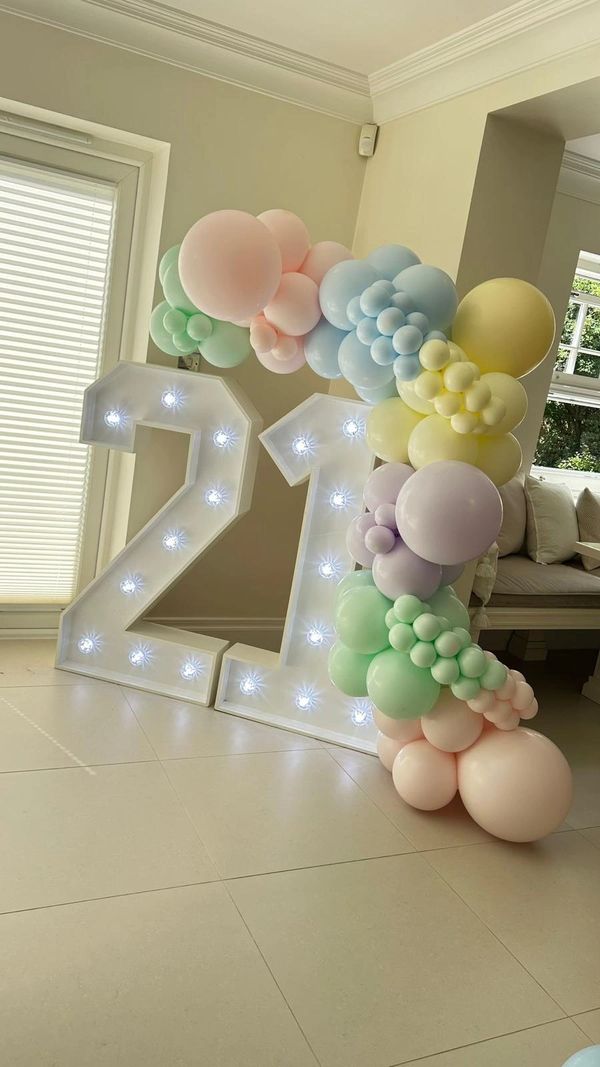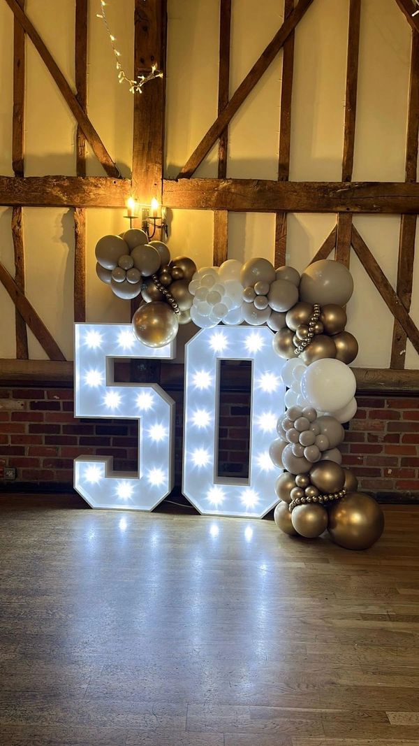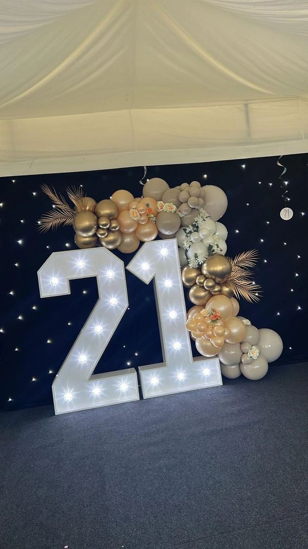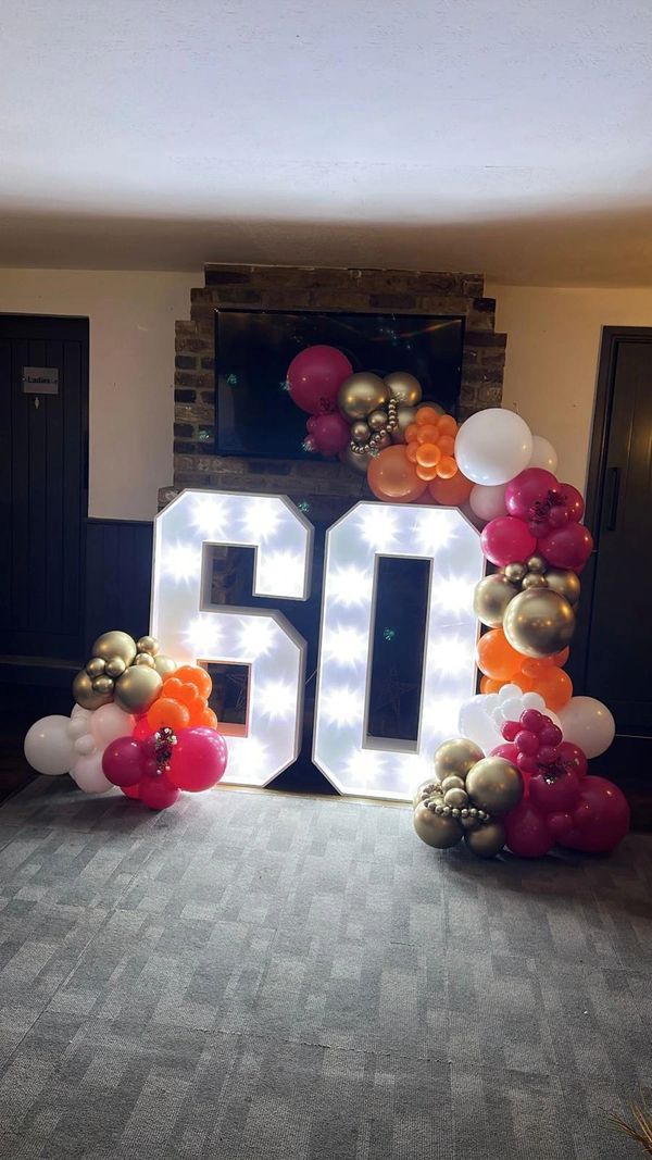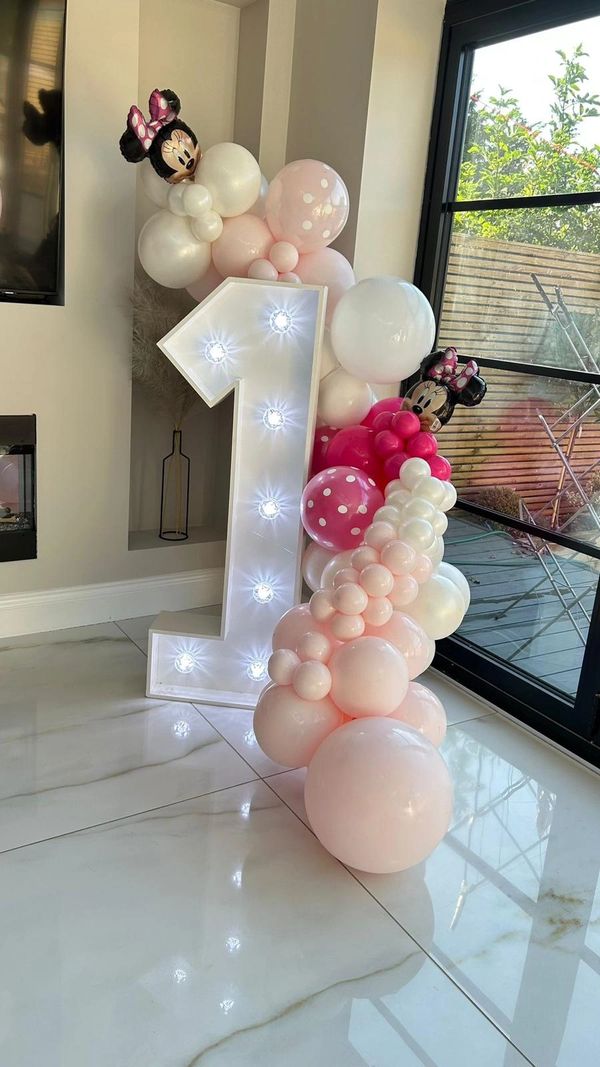 Light up number hire with organic balloon garland starting from £90 for 1 number or